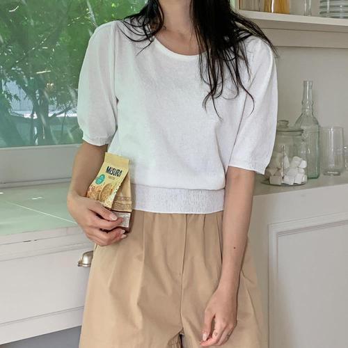 [바닐라비]여성 유넥 퍼프 반소매 데일리 니트