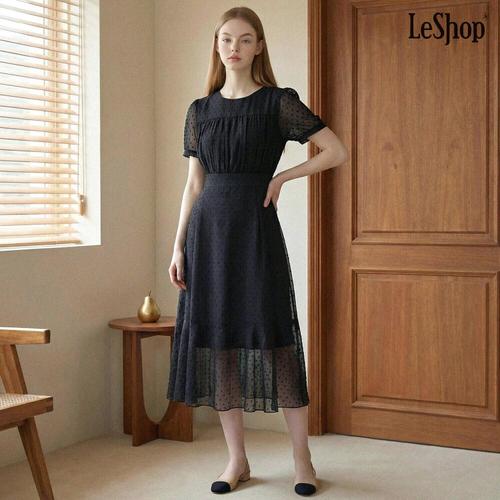 [르샵]데일리 도트 패턴 반팔 롱 프릴 원피스 (DQ2OW013A)