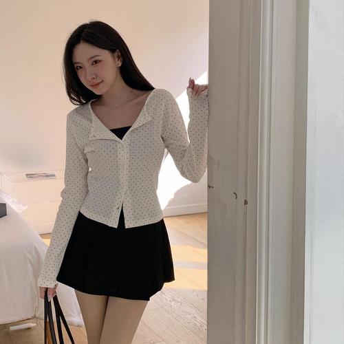 긴팔 여름 U 니트 도트가디건 심플 여성 긴팔 가디건 니트 여성 여름