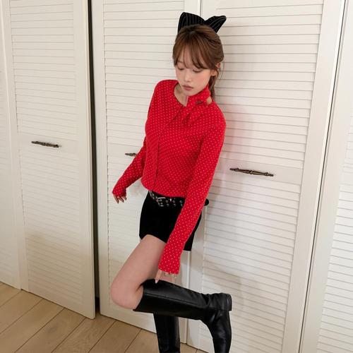 [옷자락]여자 데이트룩 로맨틱 도트 타이 가디건 세트