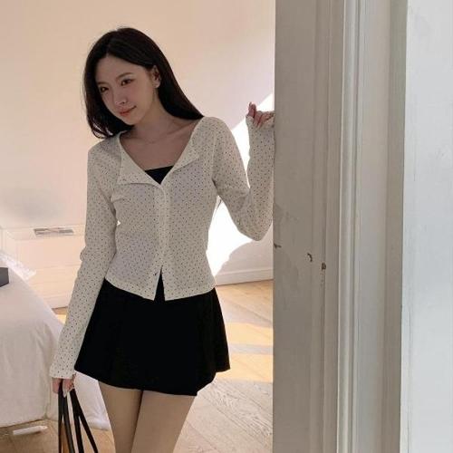 [옷자락]여자 봄 여름 코튼 도트 슬림핏 세미크롭 가디건