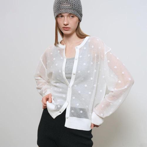 [제너럴아이디어]WOMAN 도트 시스루 가디건 [WHITE] / GF1LKC516