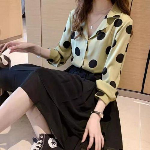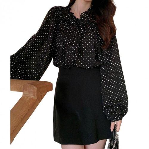 도트 패턴 프릴 장식 여성용 셔츠 블라우스 남방 아이템 WFLLPUC