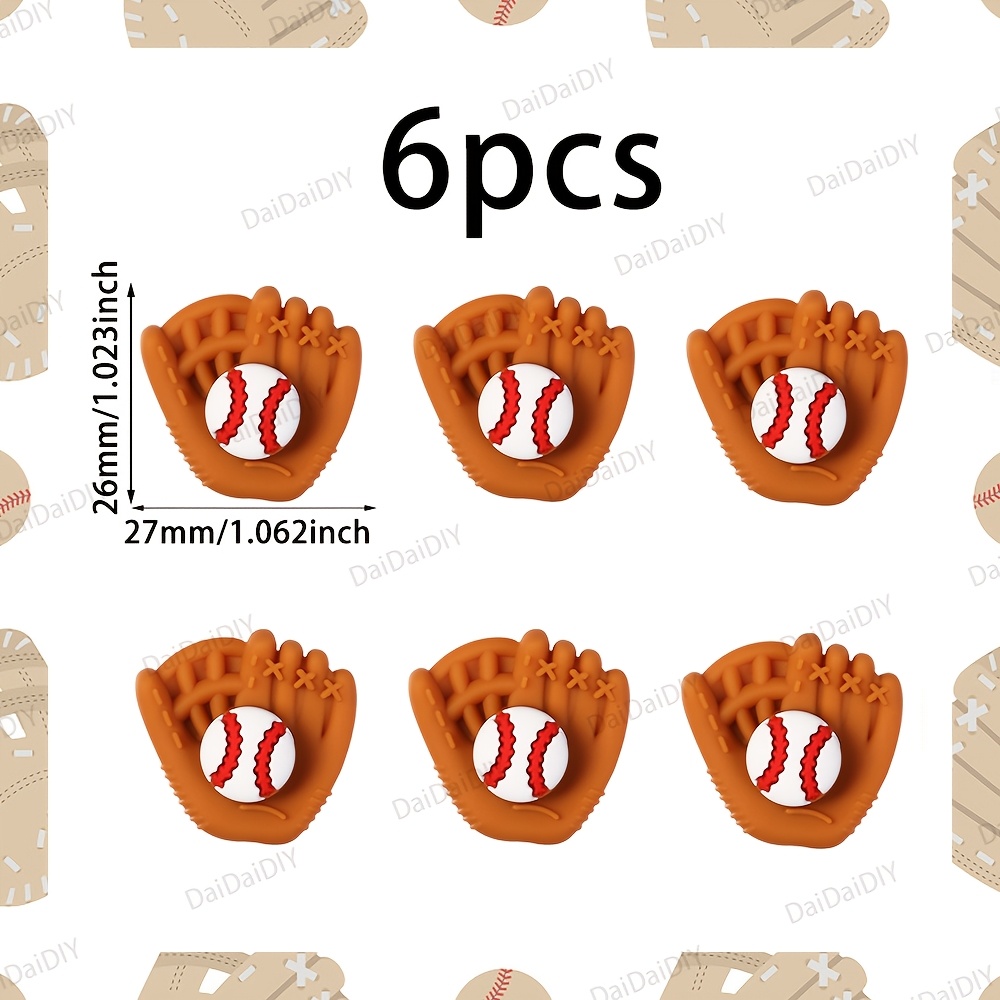 TEMU 야구공 3D 구슬 6개 - 사실적인 브라운 실리콘 모양 구슬, 주얼리 제작, 팔찌, 랜야드, 펜참, DIY 공예용 꿰기 용도, 스포츠 애호가를 위한 야구 테마 액세서리