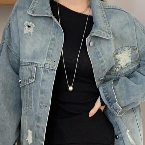 [디자이너몰]여성 봄 여름 빈티지 워싱 카라 청자켓