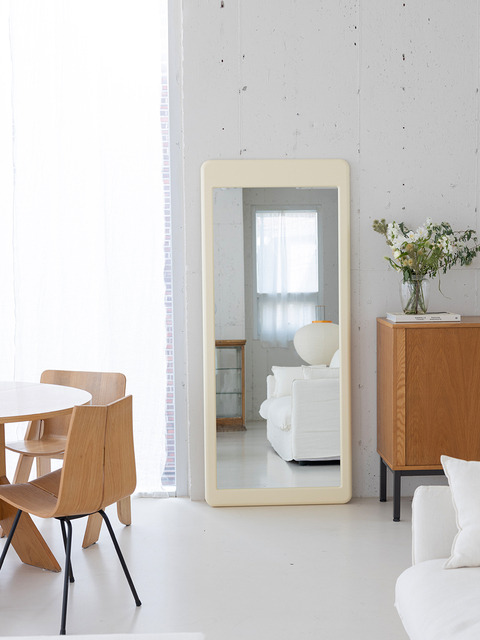 [커넥토리얼] 스퀘어 디자인 전신 협탁 거울 - 베이지(Large)