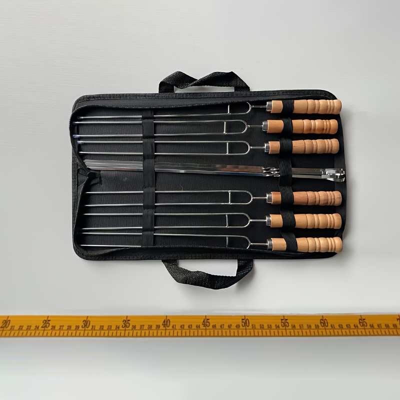 TEMU 10개 스테인리스 스테이크 꼬치 세트 (너도밤나무 손잡이) | BBQ 도구/두꺼운 안티벤드 스테인리스 핀 | 야외 피크닉/정원 바베큐/졸업 캠핑 파티 | 미국식 바베큐 세트, 그릴 도구, 고기 요리 필수품