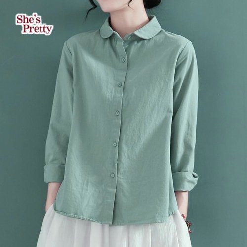 [쉬즈프리티] 허미둥근카라린넨셔츠
