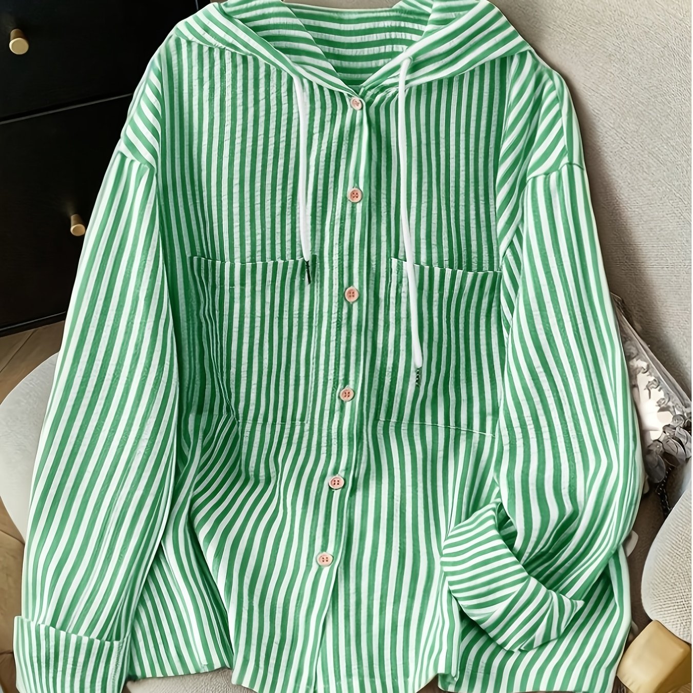 TEMU 여성을 위한 스타일리시하고 우아한 크롭 재킷. 후드, 버튼 클로저, 세로 및 컬러 블로킹의 루즈핏 디자인으로, 가을철에 완벽합니다.