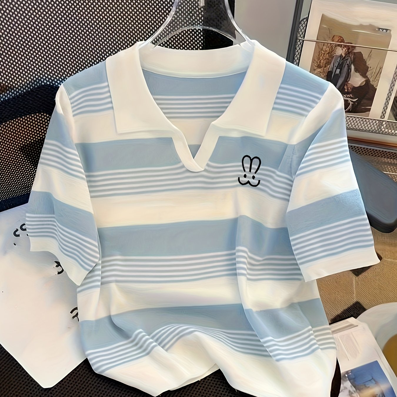 TEMU 여름 자수 폴로넥 후드 반팔 티셔츠 여성 패션 캐주얼 다용도 탑