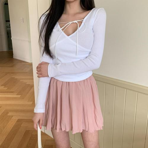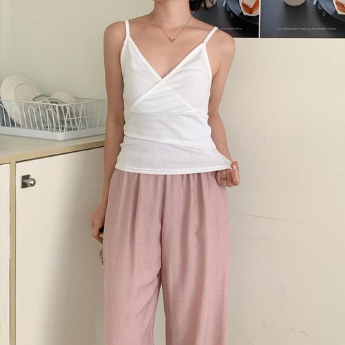 [옷자락]여자 브이넥 랩 포인트 슬림핏 끈나시