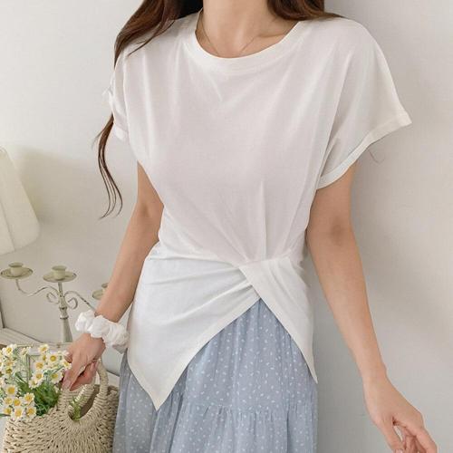 [유야]여성 무지 라운드넥 셔링 랩 반팔 티셔츠 -FTS1115- 여름