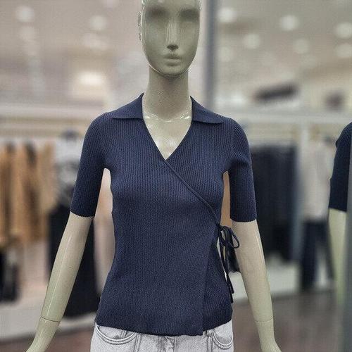 [모어오브]세비지 랩 반팔 니트 브이넥 골지 스웨터 탑