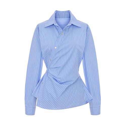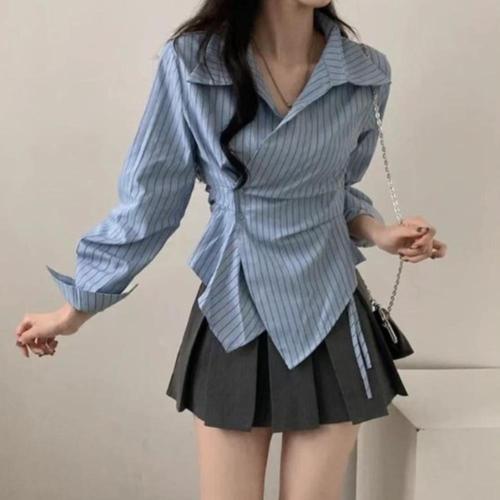 [옷자락]여성 사무실룩 오피스 랩 스트라이프 셔츠 블라우스