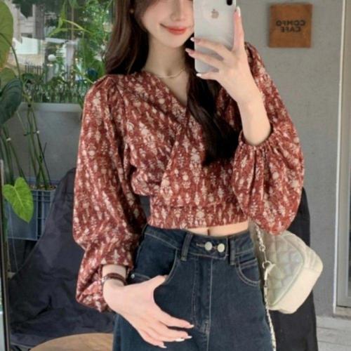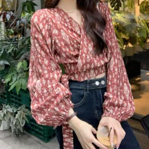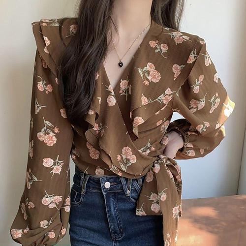 [오너클랜]인기상품 2030 여성 블라우스 랩 스타일 프릴 플라워 셔츠 [WFHNVVL_260314]