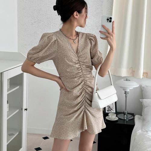 [옷자락] 여자 데일리 바캉스 데이트룩 러블리 셔링 벌룬 미니원피스
