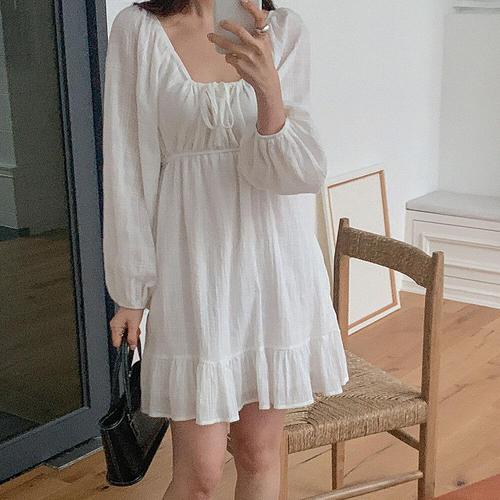 [옷자락]여자 데일리 바캉스 데이트룩 러블리 셔링 벌룬 미니원피스