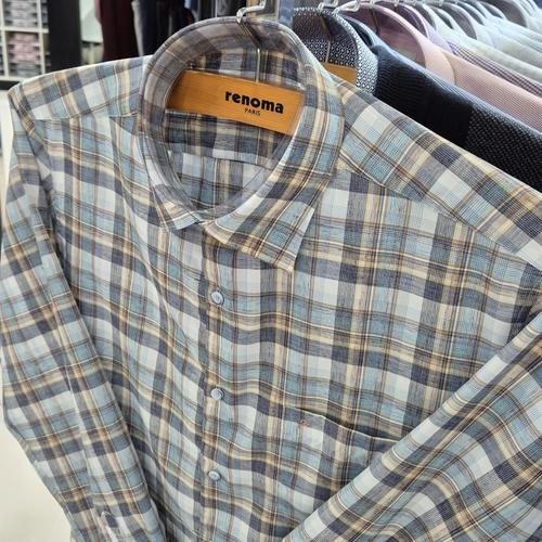 [레노마셔츠]일반핏/린넨혼방 멀티 빅체크 긴소매 셔츠 RQSSG1437 GE_US