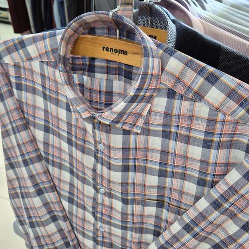 [레노마셔츠]일반핏/ 린넨혼방 멀티 빅체크 긴소매 셔츠 RQSSG1437 OR_US