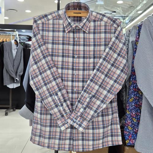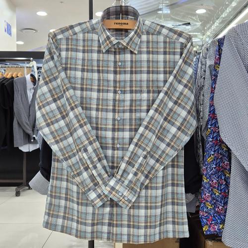 [레노마셔츠]일반핏 /린넨 혼방 잔체크 도비 긴소매 셔츠 RQSSG1421 GE_US