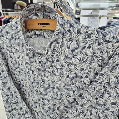 [레노마셔츠]슬림핏 /린넨혼방/프레쉬 리프 프린트 긴소매 셔츠 RPSSL1176 NY_US