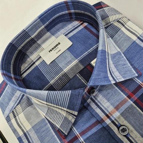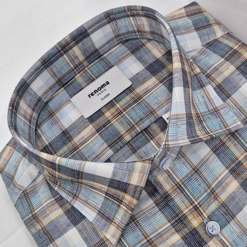 [레노마셔츠]린넨 혼방 투톤체크 일반핏 RQSSG1438_DG