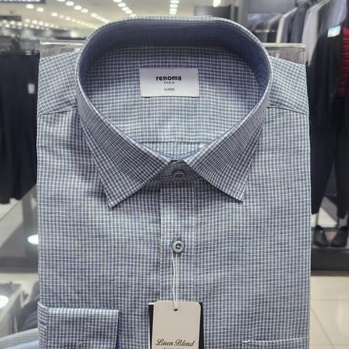 [레노마셔츠]일반핏/ 린넨 혼방 잔체크 도비 긴소매 셔츠 RQSSG1421 BU_US