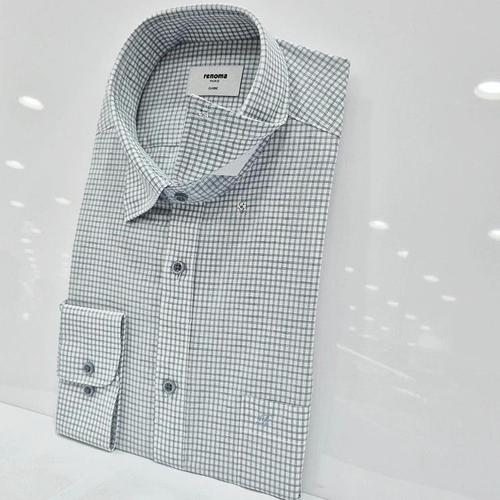 [레노마셔츠]일반핏/카라-스냅버튼/ 린넨혼방 더블 체크 긴소매 셔츠 RQSSG1434 GE_US