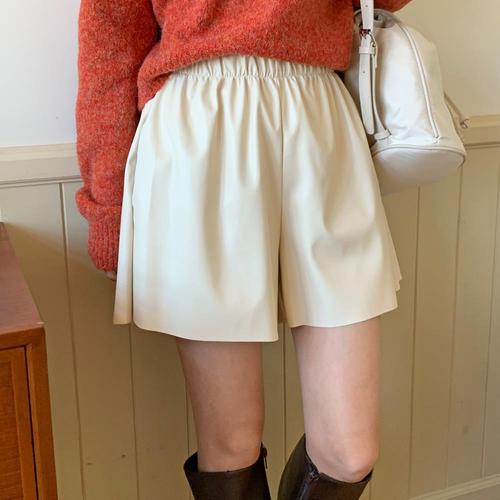 여성반바지 하이웨스트 퓨어 트임 버튼 PU 가죽 반바지 심쿵직구