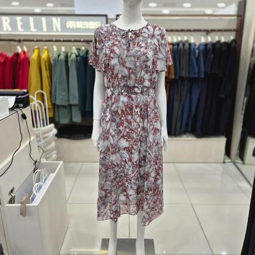 [프렐린]레드 프린트 스모킹 원피스 RJO242150_SC