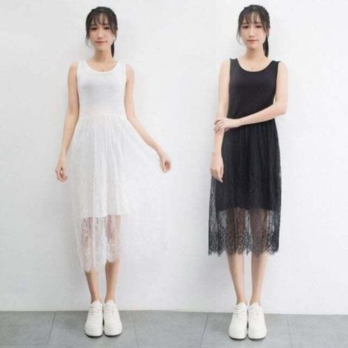 [옷자락]여자 레이스 프릴 레이어드 데일리룩 슬리브리스 끈나시