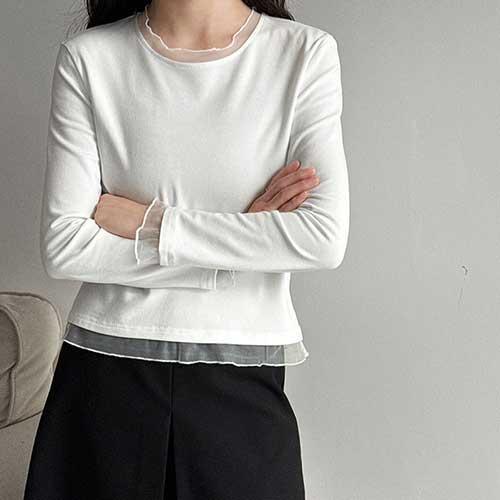 피부에 닿는 부드러운 레이스레이어드티셔츠, 하루 종일 편안하게 입어보세요.