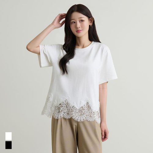 라운드넥 레이스 레이어드 루즈핏 반팔 티셔츠 (SJT26027)