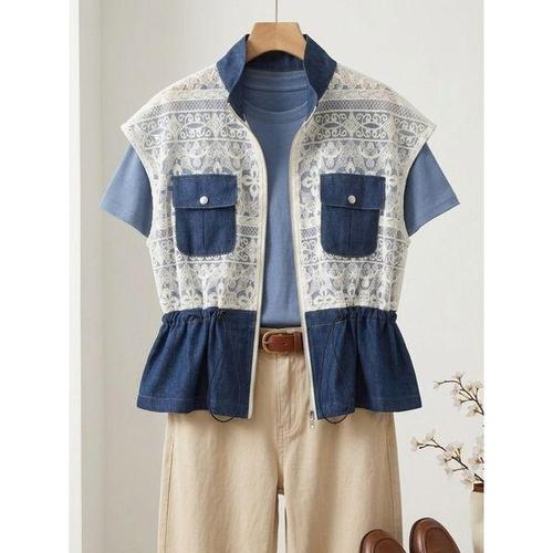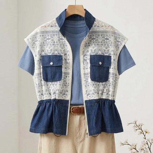 [막스까르띠지오]스팽글 레이스 배색 데님 베스트