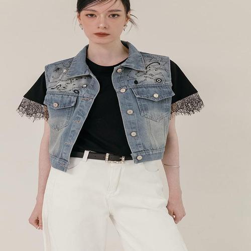 [넬리]세린 레이스 데님 베스트_ND2JK501