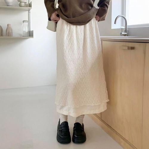 [옷자락] 여자 레이스 이중 레이어드 밴딩 롱 스커트