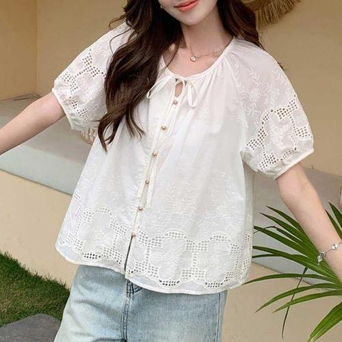 [오너클랜]인기상품 레이스 펀칭 여성용 반팔 셔츠 여름 블라우스 [WFLLJ7C_260305]