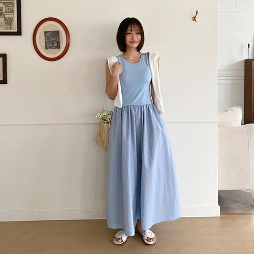 [옷자락] 여자 라운드넥 민소매 레이어드 롱 원피스