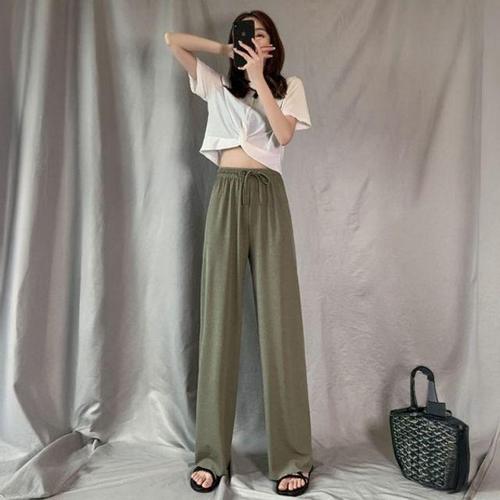 아이스 실크 얇은 남성 여름 바지 드레이핑 라지 사이즈 스트레이트 롱 팬츠 홍콩 스타일 INS 트렌디 학생 와이드 레그 캐주얼 팬츠