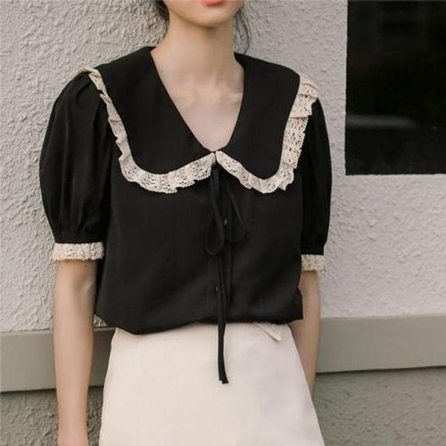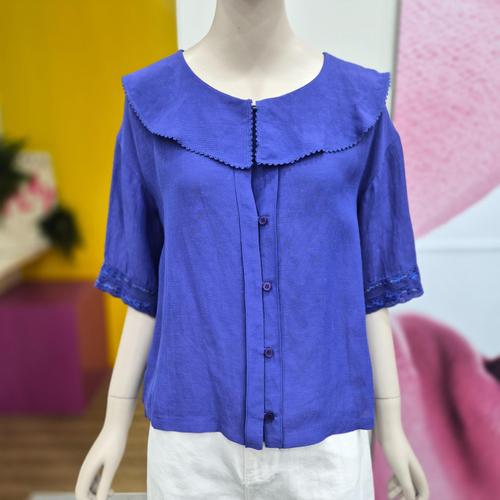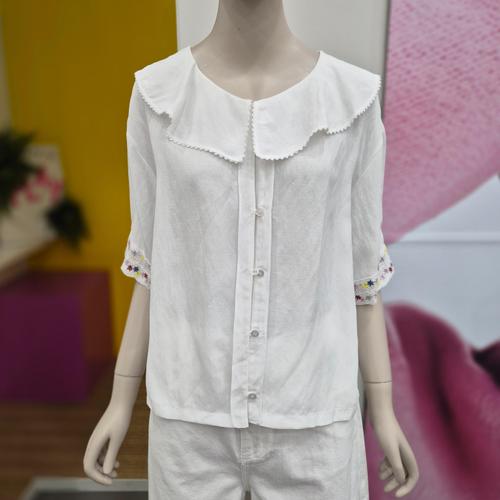 [블랙퀸] 자수 코튼 레이스카라 셔츠 blk004456