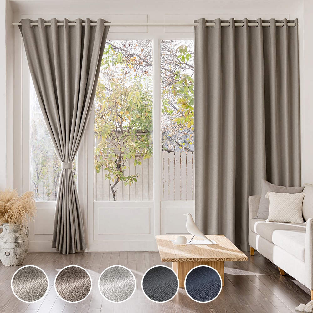[라이크홈] 프리미엄 고밀도 린넨필 암막커튼 아일렛형 작은창 2P+커튼봉 세트 (6Color)