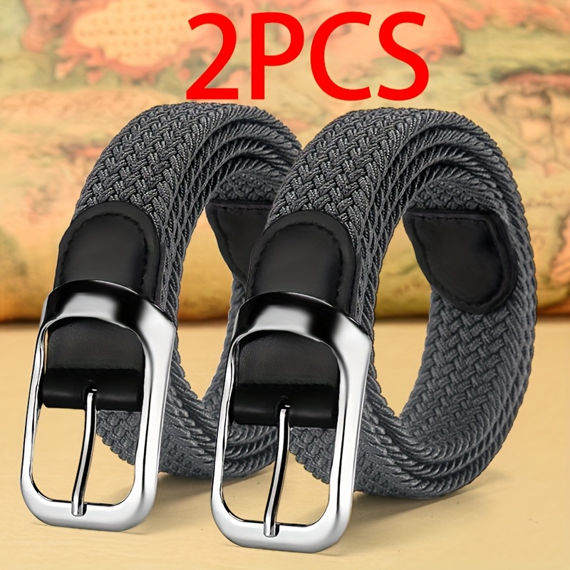 TEMU 2개 조합 캐주얼 바늘 버클 벨트, 남녀공용 탄성 벨트, 접이식 탄성 허리 밴드, 편안하고 내구성이 뛰어난 스포츠 벨트