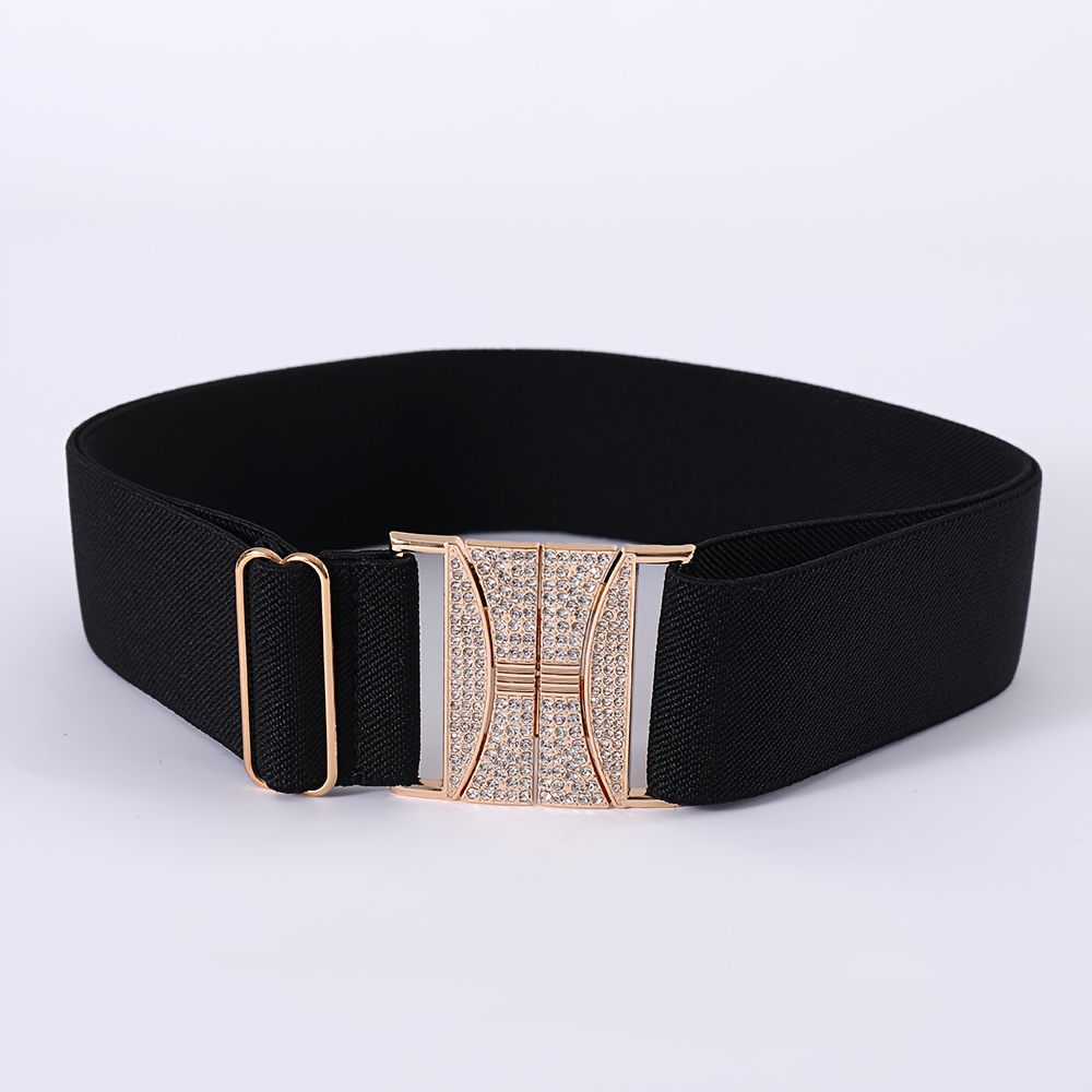 TEMU 1개 라인스톤 사각 버클 장식 허리 벨트, 간편한 패션 탄성 드로스트링