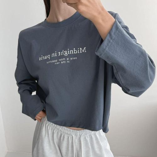 [옷자락] 여자 박스 크롭티 레터링 방송댄스복 라운드 봄 티셔츠
