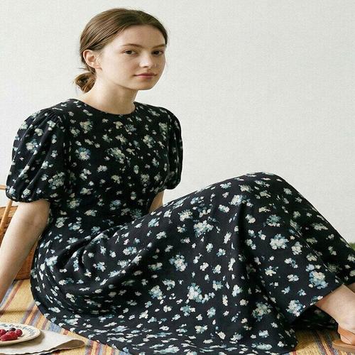 [올리브데올리브]올리브데올리브 볼륨소매 플라워 프린트 롱 원피스 YW4MO3270