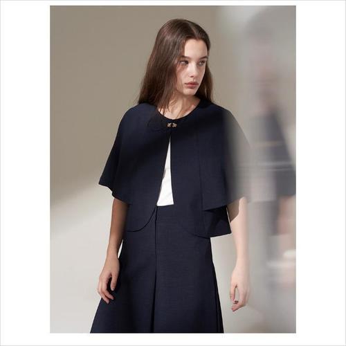 [다잇템][다잇템] 여성 짧은 카라없는 쁘띠 망토 재킷 브로치포인트_24682144_588872