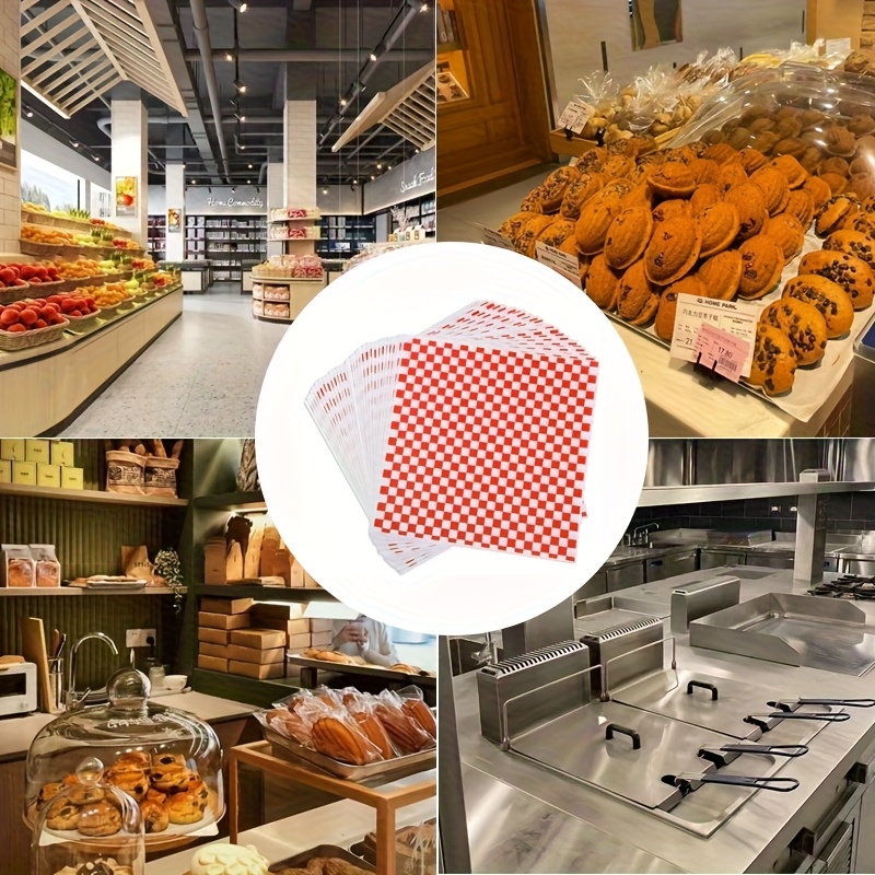 TEMU 빨강-흰 체크 무늬 디자인의 200개 오일프루프 종이, 햄버거, 샌드위치, 튀김 스낵에 적합 - 오일프루프 바스켓 라이닝 종이, 백화점 및 레스토랑에서 사용하기 이상적