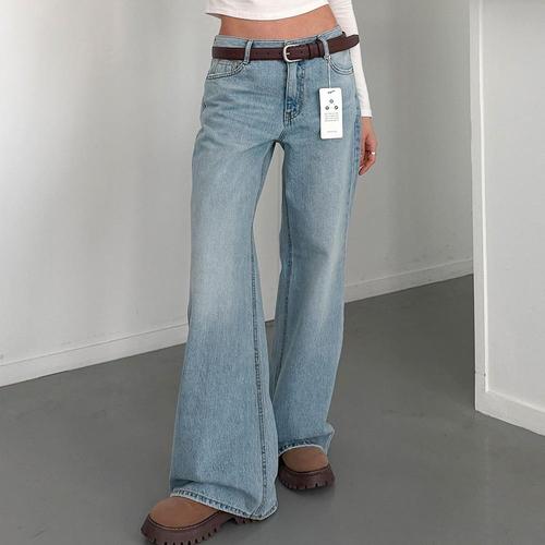 [옷자락] 여자 로우라이즈 새깅 루즈 부츠컷 연청 봄 청바지