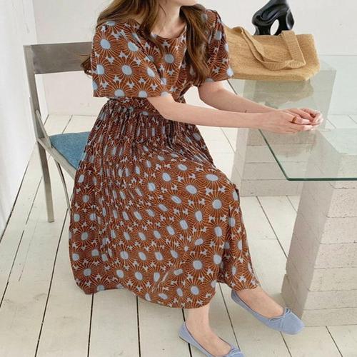 [하젤]모니멈 플라워 나염 플리츠 롱원피스_M4719