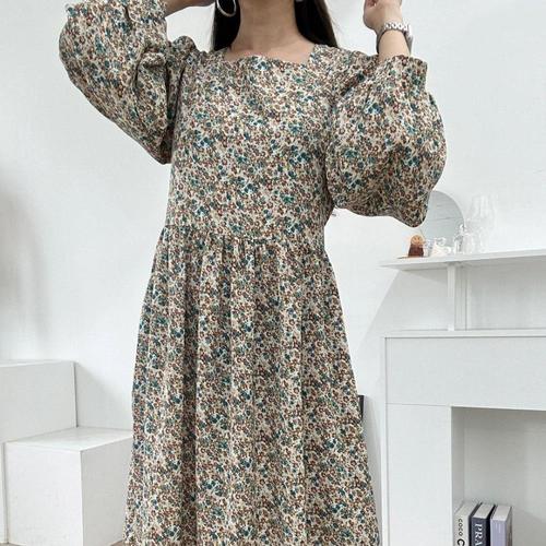 [옷자락] [시즌오프]가을 스퀘어넥 플라워패턴 등원룩 퍼프 롱원피스_5